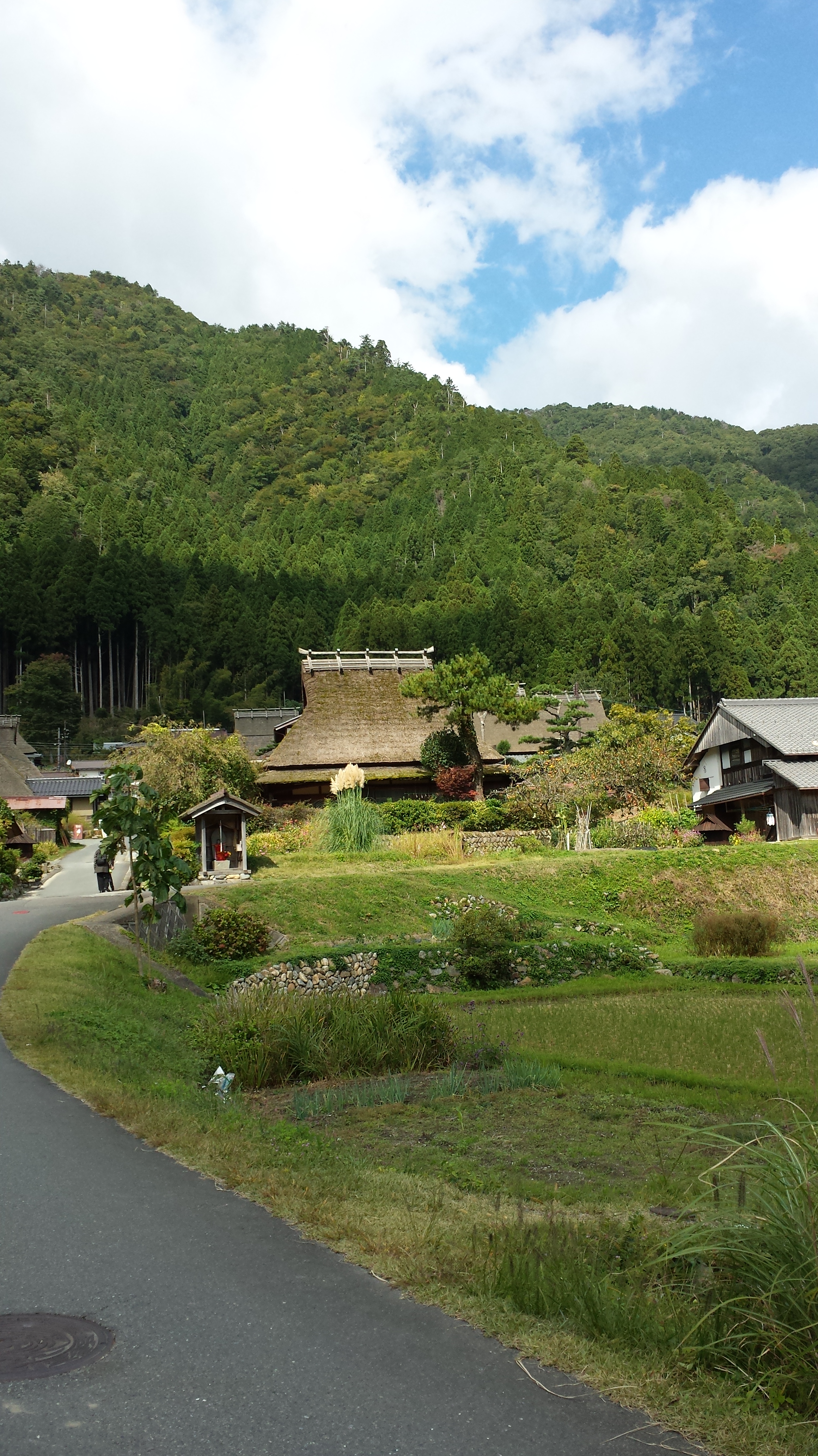 6-Sitzer. Von außen sah es kleiner aus, als es in Wirklichkeit war. Wir sind dann losgedüst und sehr weit raus gefahren, bis schön in die Berge. Ich weiß nicht, wie viele Mautstellen wir unterwegs passiert haben – aber es waren einige. Zwischendurch haben wir einige kleine Stopps gemacht und etwas gegessen. Wir sind bis nach Miyama gefahren, wo wir auch etwas herumgelaufen sind. Es war super schön dort, mit den Bergen drum herum.