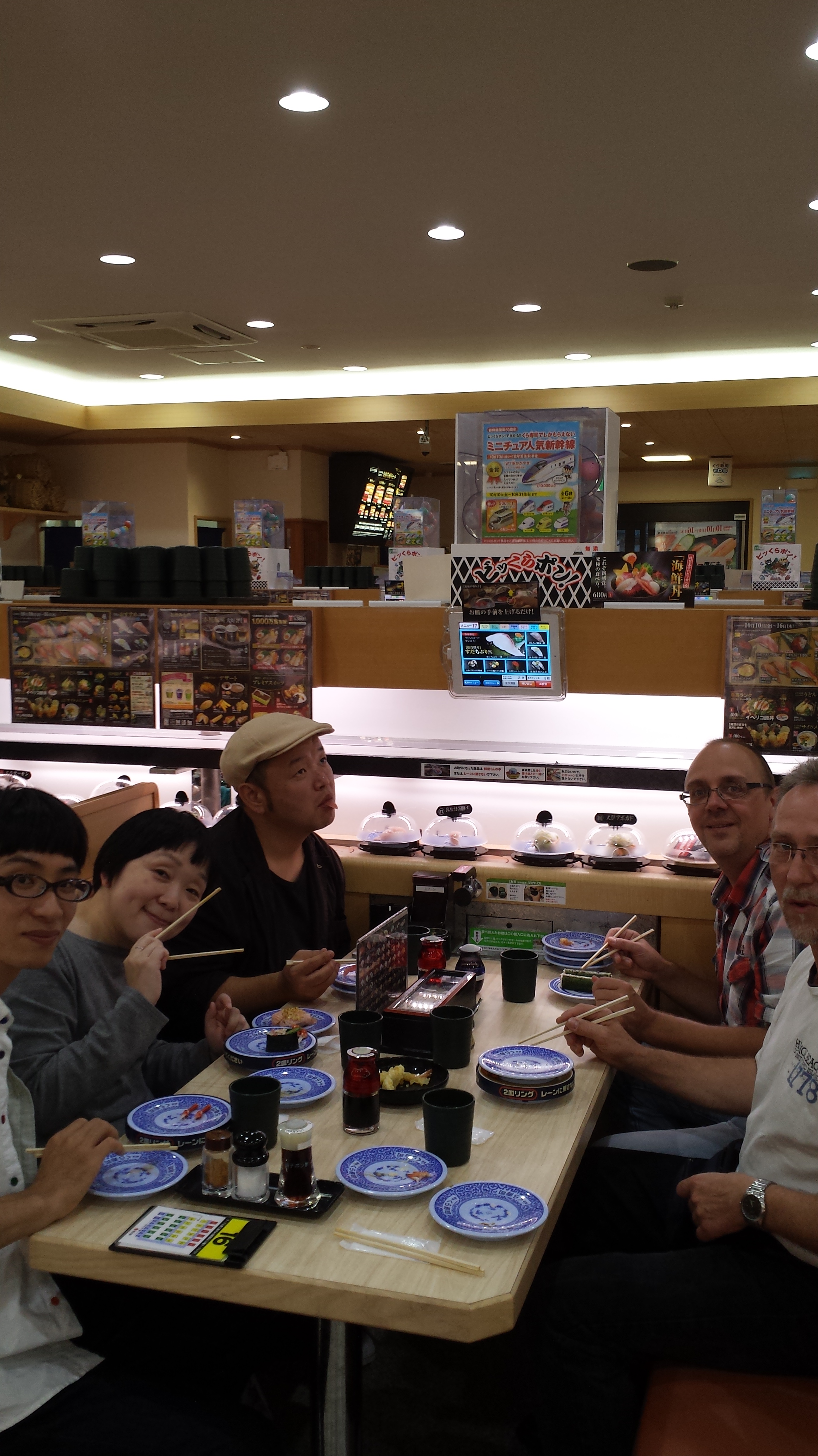 Wir sind dann wieder nach Kyoto gefahren und waren Kaiten Sushi essen. In dem Lokal habe ich das bisher besten Sushi meines Lebens gegessen, wirklich unglaublich lecker! Das beste war, dass man sich noch Sachen bestellen konnte und der Preis nach Anzahl der Teller ging. Die Teller wurden direkt in eine Art Nische gesteckt und jeweils nach 5 Tellern wurde auf einem kleinen Monitor ein Filmchen angezeigt, wo man noch ’ne Kleinigkeit gewinnen konnte (kleine Spielzeugzüge bzw. Lokomotiven). Wir hatten zum Schluss 80 Teller leer geputzt und haben 4 mal gewonnen.Der Tag war echt super schön, das war ein tolles Erlebnis. Das Wetter war auch gut, es war einfach alles perfekt. Morgen werden wir den Tag etwas langsamer angehen lassen und uns abends wieder mit den dreien treffen und dann irgendein Festival besuchen.