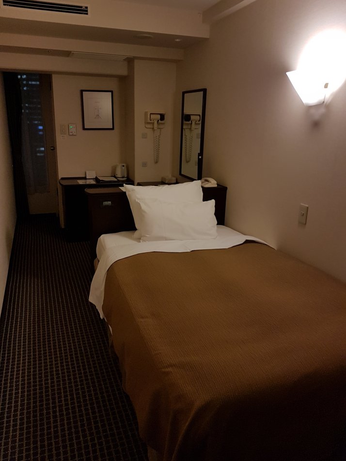 Wir befinden uns im East Tower und die Zimmer sind wie in jedem anderen Hotel sehr klein. Leider bin ich vom Bad etwas enttäuscht, da dies einer kleinen Nussschale gleicht und die Wanne so schmal und klein ist, wie ich es bisher noch nicht erlebt habe. Ich bin bei Weitem nicht die Längste auf dieser Welt, aber hier kann man generell nur mit stark angewinkelten Beinen drin sitzen. Ich habe die Hoffnung, dass es im Hotel in Osaka besser ist – aber ich werde es überleben und trotzdem immer baden 😎