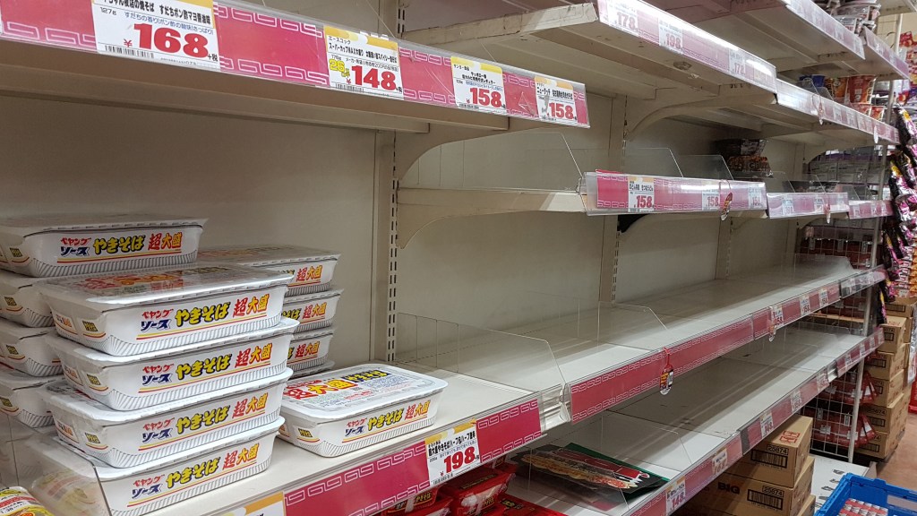 So leergefegt habe ich die Straßen von Akihabara noch nie erlebt. Hier ist kaum jemand unterwegs und die Medien haben allen geraten, sich im Voraus mit Nahrungsmitteln zu versorgen. Von den geschlossenen Geschäften erfuhren wir aber leider erst, als wir es mit eigenen Augen gesehen haben.