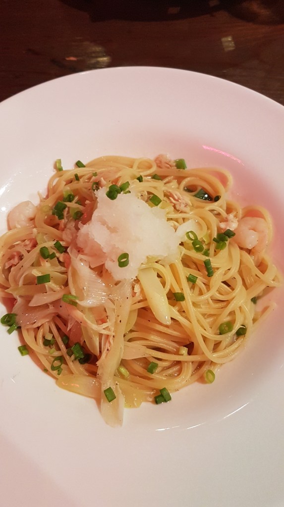 Auf der Suche nach einem Restaurant, was vielleicht doch offen hat, sind uns ein paar Leute mit Tüten entgegengekommen. Man konnte Cup Noodles erkennen, die wir uns auch kaufen wollten. Zum Glück hatte hier wirklich ein Laden noch offen, vermutlich der einzige auf der ganzen Einkaufsstraße. Dort haben auch wir uns eingedeckt und auf dem Rückweg zum Hotel ist uns sogar zufällig ein kleines Restaurant aufgefallen, wo wir uns reinsetzen konnten.