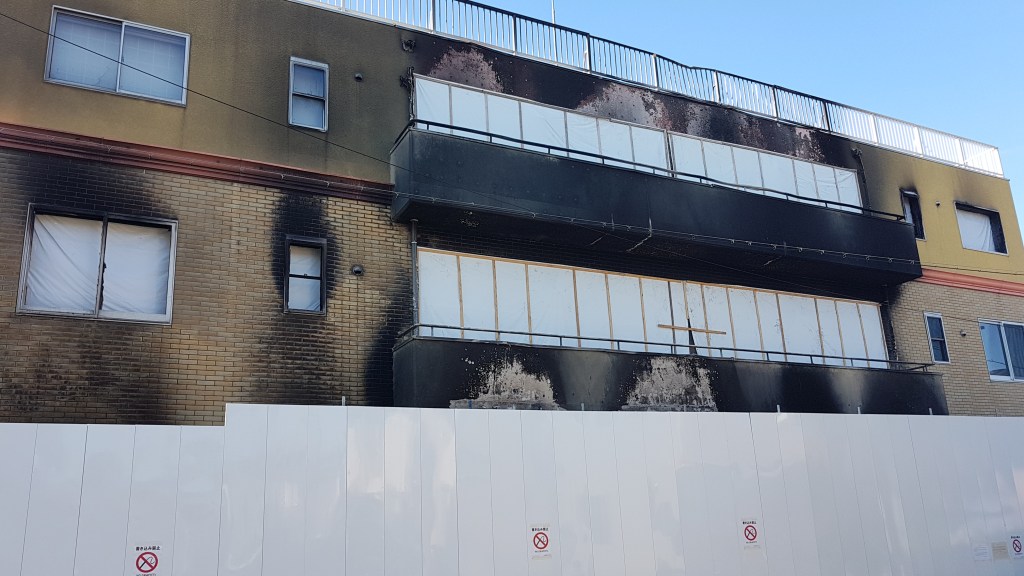 Nach einer Weile sind wir am Ziel angekommen. Wir sind zum 1. Animationsstudio von Kyoto Animation gelaufen, was ein wirklich trauriger Anblick war. Vor ca. drei Monaten wurde dort ein Brandanschlag verübt und viele Menschen sind dabei ums Leben gekommen. Vor allem meine Freundin wollte hier den Opfern gedenken. Es ist einfach nur traurig, was dort passiert ist. Bilder und Berichte in den Medien zu sehen ist das eine; es selbst gesehen zu haben etwas völlig anderes. Mein Beileid.