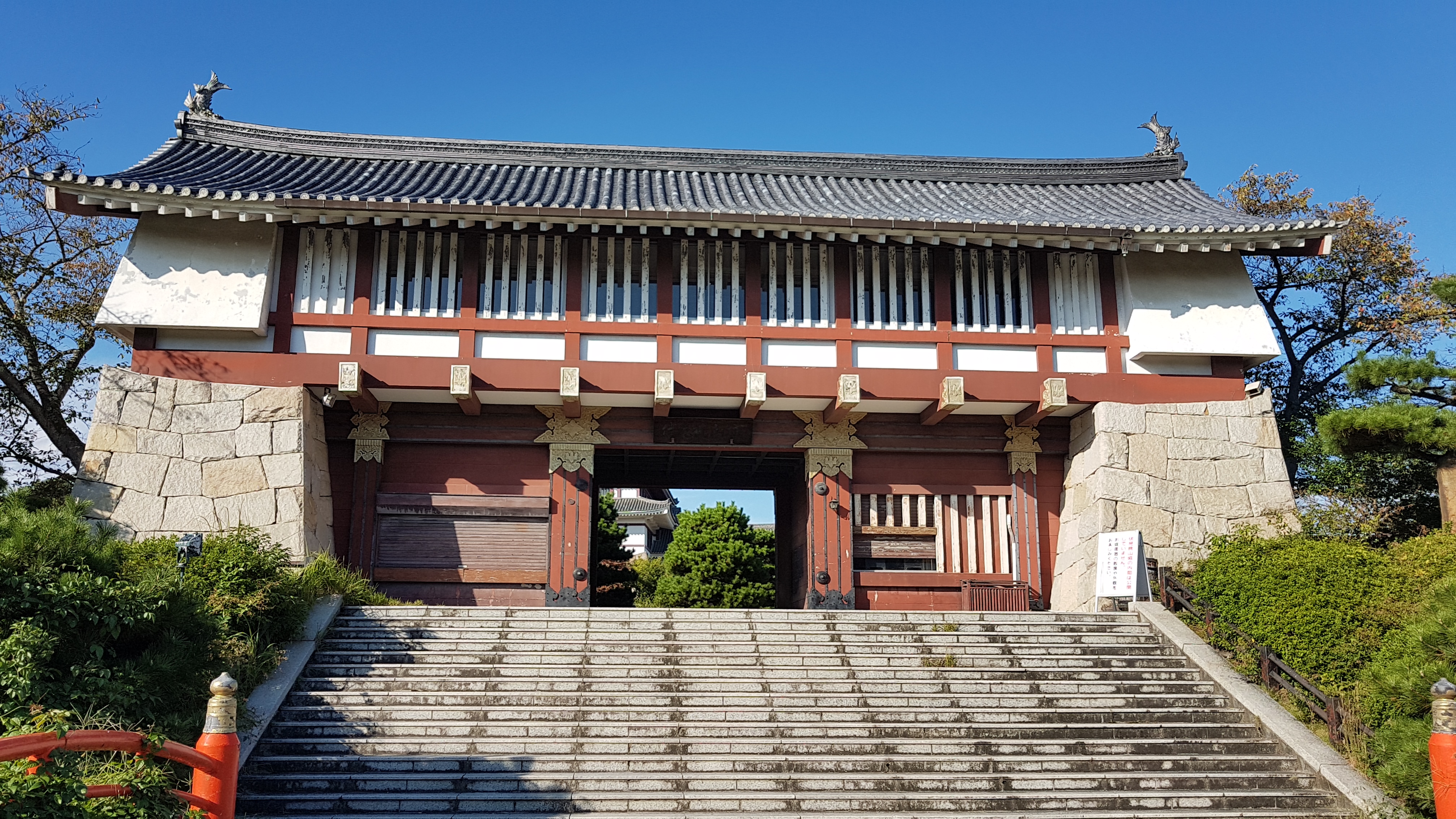 Irgendwann sind wir dann angekommen: Bei der Burg Fushimi. Leider durfte man die direkte Umgebung und die Burg nicht betreten, sodass ich nur von außen Bilder machen konnte. Dennoch war der Anblick sehr schön und zumindest für mich hat sich der weite Weg gelohnt.