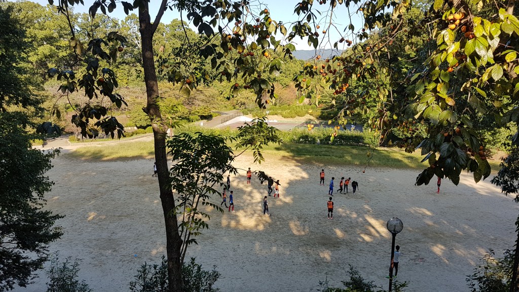 Es gab noch zwei Tempel in der Nähe, die ich gerne besichtigen wollte. Wir sind den Berg über einen anderen Weg wieder hinuntergegangen und sind bei einem Sportverein (vermutlich) vorbeigekommen, wo gerade Fußball gespielt wurde. Den Weg weiter runter gab es einen Automaten, an welchem wir uns ein Eis gekauft haben.