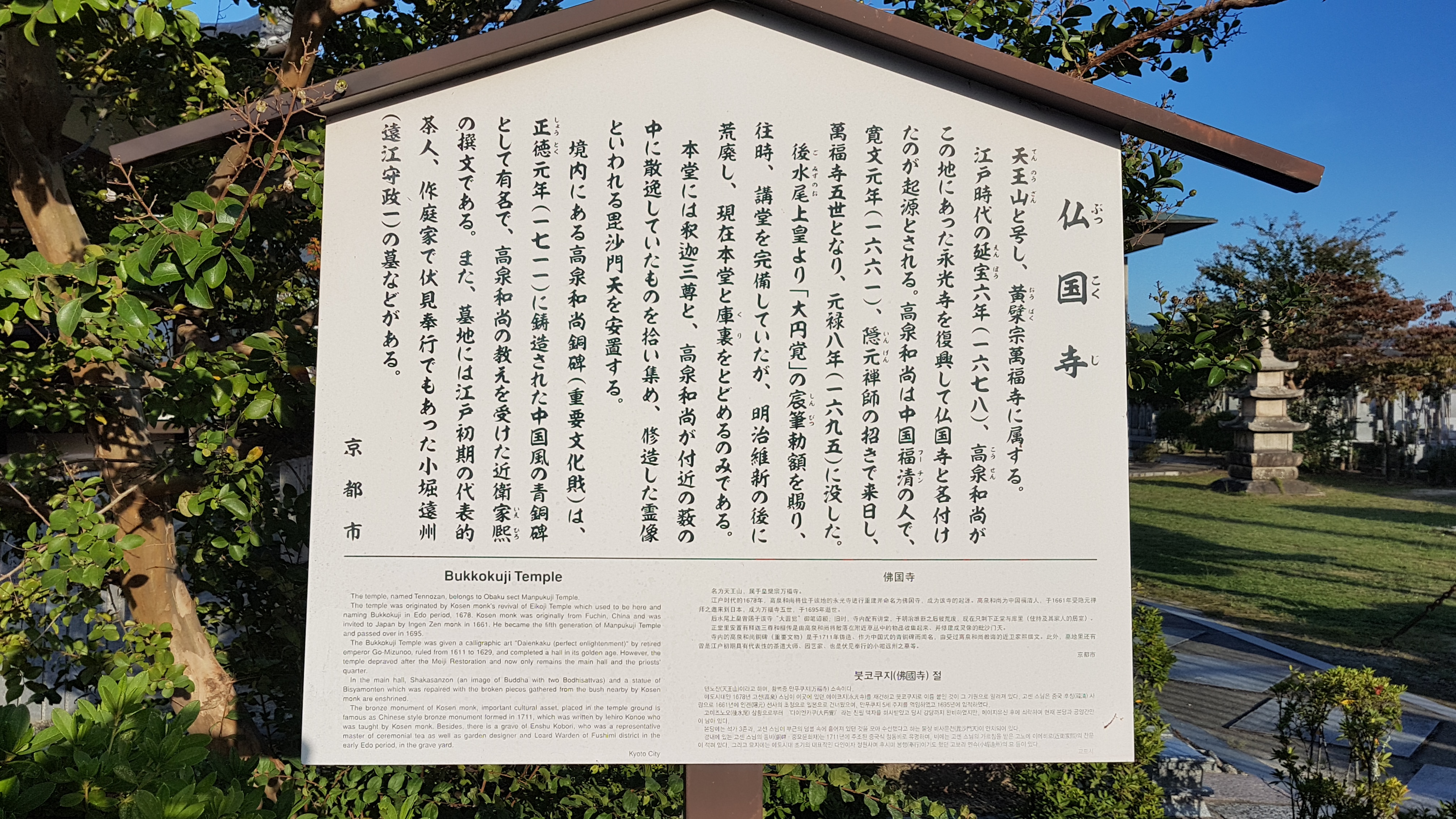 Nicht weit von dort sollte der Kyotonenho Tempel sein, doch leider fanden wir nicht das vor, was wir (oder ich) uns erhofften. Vielleicht war es zwar ein Tempel, aber keiner, wie ich ihn kenne – sondern irgendein modernes Bauwerk. Davon ließ ich mich allerdings nicht entmutigen und wir sind zu einem weiteren Tempel gelaufen. Dieses Mal gab es auch etwas zu sehen 🙂 Der Bukkokuji Tempel war zwar nicht besonders groß, aber dafür schön anzusehen.